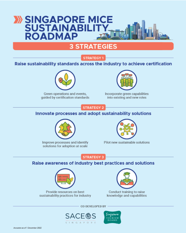 新加坡旅游局(STB)联手 SACEOS 发起“2022 MICE 可持续发展路线图”,该计划对标《2030 新加坡绿色计划》与联合国可持续发展目标,设定了明确时间表与目标: