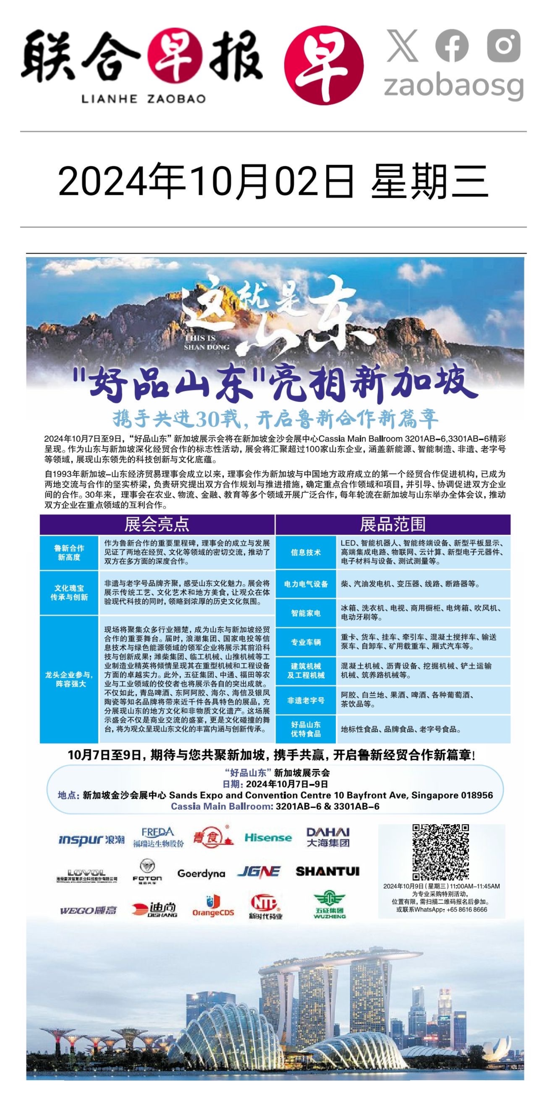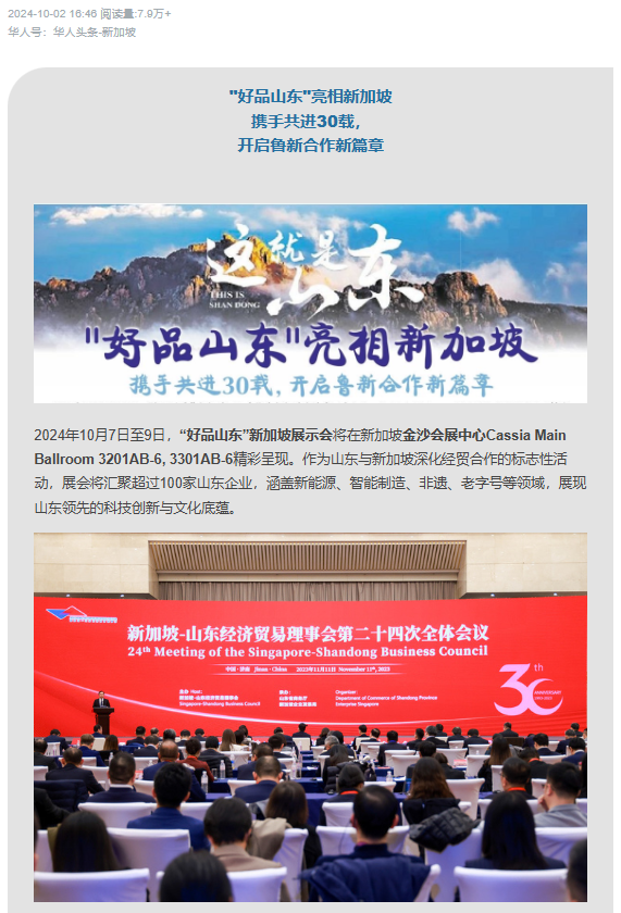 "好品山东"亮相新加坡 携手共进30载,开启鲁新合作新篇章
